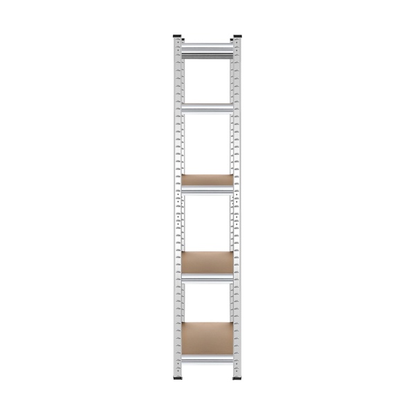 Store them safe and strong with our Sharptoo 5-tier Storage Shelf. With a stronger, corrosion-resistant cold rolled steel construction, the storage shelf structure will not easily buckle under heavy weight and each tier can hold up to 200kg in capacity. The sizeable 5mm thick MDF shelving allows for ample space to store anything with adjustable heights to make things more convenient for you. Plus, a centre support beam provides reinforced strength for every shelf. Best of all, putting together this storage shelf is fast and effortless with its boltless assembly that only requires a small assistance of a hammer or rubber mallet to set the catches in place. Use it in the garage, shed, home or shop, the Sharptoo 5-tier Storage Shelf can also be transformed into a work bench if desired. Need to say more? Set yours up today. 5-tier shelving system