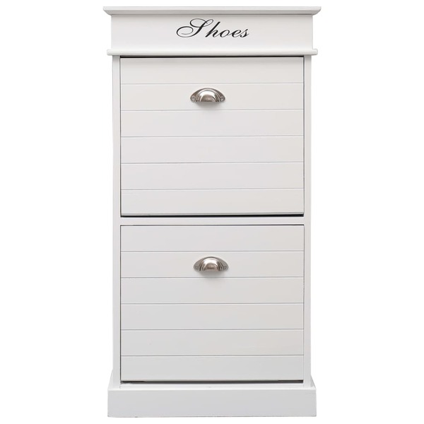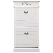 Our timeless wooden shoe cabinet presents an ideal shoe storage solution for your bedroom or hallway. You will no longer be annoyed by shoes cluttering your floor. It will also create a warm and welcoming ambience for your hallway or bedroom. Made of paulownia wood, this hall cabinet is exceedingly durable and sturdy. The 2 large tilting compartments have cross bars to keep things well-organised. Additionally, the cabinet top can be opened, and you can use the upper compartment to store shoe accessories such as shoelaces, shoe-pads, as well as various other small belongings. Our shoe organiser is easy to assemble.
