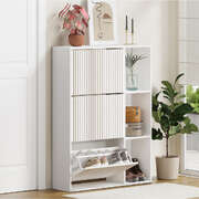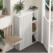 With its striped textured design, the Shoe Storage Cabinet is as impressive as it is practical. The appealing profile makes the furniture piece a real standout in any discerning home decor and a stylish welcome to any entrance, hallway or doorway.