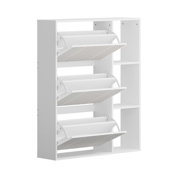 As a shoe cabinet, this eye-catching piece of furniture is designed to speak volumes in form and function with ample storage for a myriad of footwear. Kids, womens and mens footwear can all be easily accommodated with adjustable shelving within the 3-compartment, 2-tier closed storage.