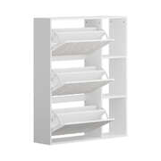 With its durable particle board construction, the handle-free shoe storage cabinet is sturdy enough to handle its task. The finishing is smooth with fine attention to details that is backed by meticulous workmanship. A near flawless display that certainly commands visual attention and appreciation on first sight.