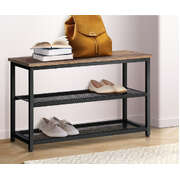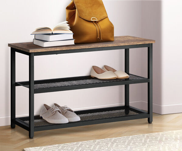 Shoe Storage Bench 3 Tier Industrial Shoe Rack Shelf with Seat Black