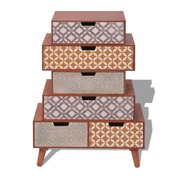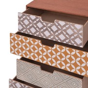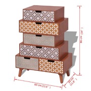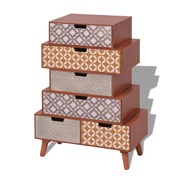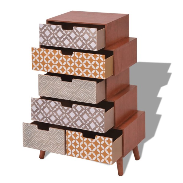 This side cabinet with 6 drawers has a retro design with elegant decorative patterns. The sideboard will make a practical as well as highly decorative addition to your bedroom, living area or lounge room. The rectangular top can be used to place a telephone or display decorative objects such as photo frames or potted plants. The six drawers provide ample space for keeping all kinds of smaller items organised and within reach. Thanks to the high-quality MDF material and the strong pinewood legs, this commode is very sturdy and durable. Assembly is really easy.