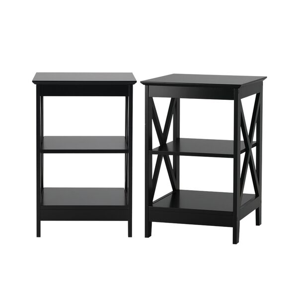 Side Table Coffee Bedside Sofa Table 3-Tier Shelf Black 2 Pack