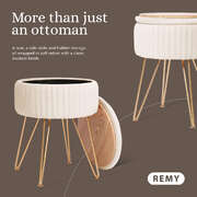 Side Table Storage Ottoman - Velvet Padded Stool Vanity Footstool REMY - Cream Beige