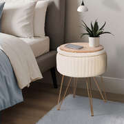 Side table storage ottoman - velvet padded stool vanity footstool remy cream beige