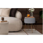 Side Table Storage Ottoman - Velvet Padded Stool Vanity Footstool REMY - Grey