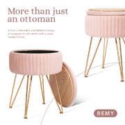 Side Table Storage Ottoman - Velvet Padded Stool Vanity Footstool REMY - Pink
