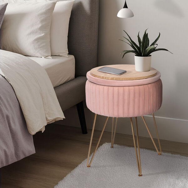 Side table storage ottoman - velvet padded stool vanity footstool remy pink