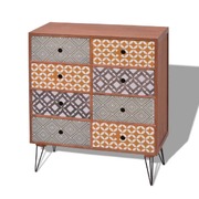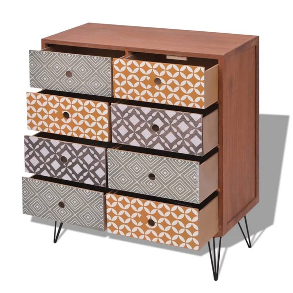 This sideboard with 8 drawers has a retro design with elegant decorative patterns. The side cabinet will make a practical as well as highly decorative addition to your bedroom, living area or lounge room. The rectangular top is ideal for placing a telephone or display decorative objects such as photo frames or potted plants. The eight drawers provide ample space for keeping all kinds of smaller items organised and within reach. Thanks to the high-quality MDF material and the strong metal pin legs, this commode is very sturdy and durable. Assembly is really easy.