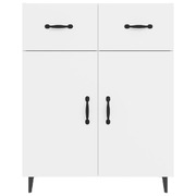 This classic sideboard is meant to make a decorative and practical addition to your home. Premium material: The engineered wood is of exceptional quality with smooth surface and also features strength, stability and resistance to moisture.Ample storage: The side cabinet has 2 doors and 2 drawers, providing ample storage space for keeping your various daily essentials well organised and within easy reach. The top of this cabinet is great for displaying your ornamental items.Easy cleaning: This storage cabinet is easy to clean with a damp cloth.Stylish design: This buffet sideboard features a stylish design, which will introduce an air of unique charm to your current interior decor! Warning:In order to prevent overturning, this product must be used with the wall attachment device provided.