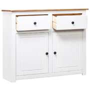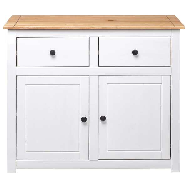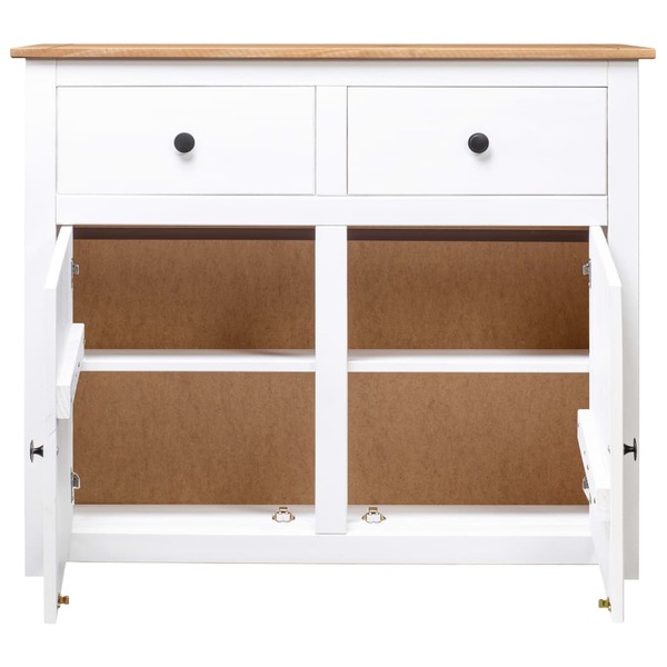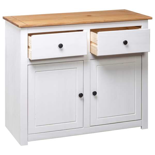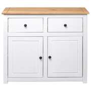 Featuring a rustic and trendy design, this solid wooden sideboard will make a decorative as well as practical addition to your decor. Designed with 2 drawers and 2 doors, the sideboard keeps your magazines, books, DVDs and multimedia devices well organised and within reach. Its sturdy top is ideal for placing decorative items such as vases or potted plants. The cabinet is made of solid pine wood. Every step of the process is carried out with the greatest care, be it polishing, painting or lacquering. The exquisite craftsmanship and the aesthetically-appealing wood grains make every piece of furniture unique and slightly different from the next. Important note: Colours and grains may vary from piece to piece, making each of our cabinets unique. The delivery is random, ensuring the exclusivity and individuality of your product.