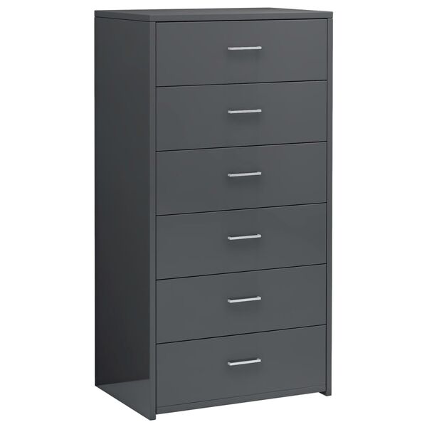 Sideboard with 6 Drawers High Gloss Grey Chipboard