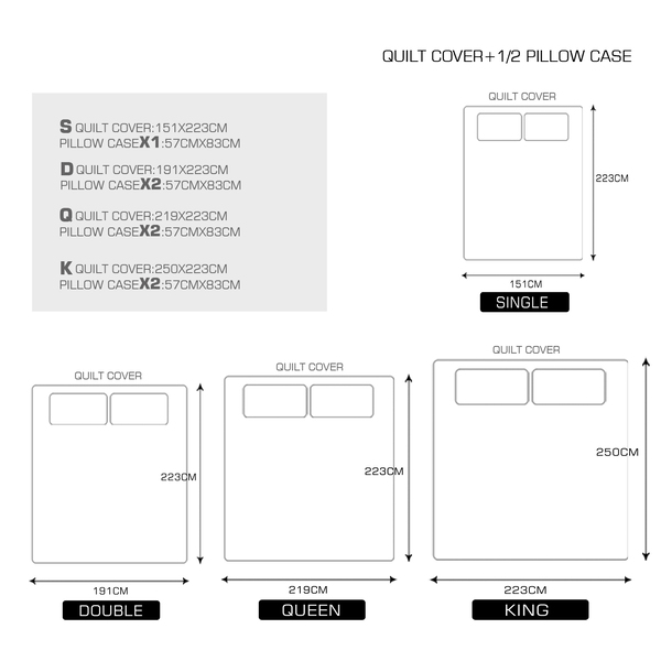 Duvet: 250cm x 223cm (LxW)