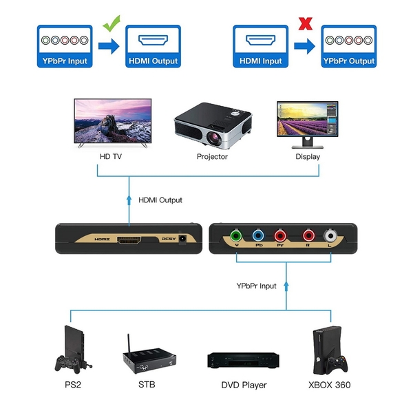 It can be applied for most component video devices, such as legacy STB, DVD players, game consoles, and more. Easy to use, plug and play, it supports 165MHz/1.65Gbps per channel (4.95Gbps all channels) bandwidth ensure no distortion of video or audio signal, and no lag in signal transmission.