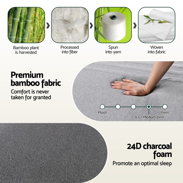Single 15cm Cool Gel Memory Foam Mattress Charcoal 7-Zone Washable Bamboo Cover