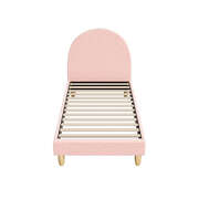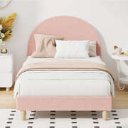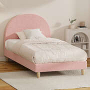 Single Bed Frame With Arched Bedhead Pink Boucle Upholstered Platform