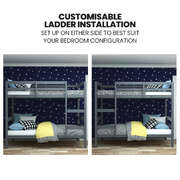 You can also take advantage of customisable ladder configuration, which allows you to install it on either the left or right side to best suit the room layout. Straightforward instructions are provided, along with quality fasteners and pre-drilled holes.The Modular Bunk bed is a practical and stylish addition to any room.