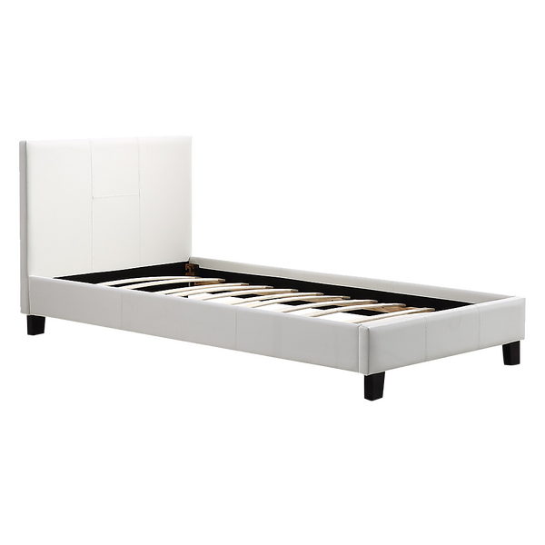 Give your bedroom a splash of color and complete your decor with our Single Bed Frame with PU Leather in white. Designed for a standard Australian sized single mattress (mattress not included), this complete bed frame and headboard is a great addition to any bedroom.