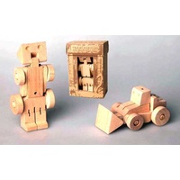 At first glance, a powerful bulldozer. But with a few twists, this fantastic wooden toy can be transformed into a robot figure. Each wooden transformer is individually boxed for wholesale. The instructions are included in the box. It is beautifully crafted and made from good quality beech wood.