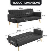 3 Seater Modular Linen Fabric Sofa Bed Couch - Black