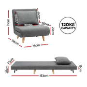 Sofa Bed Convertible Couch Recliner Lounge Chair Linen Grey