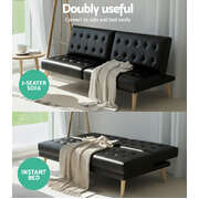 Sofa bed couch 1 seater lounge fabric black