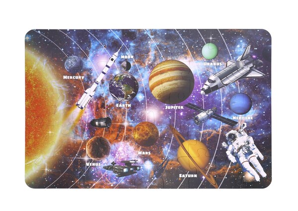 An inspirational astronomy themed Jigsaw Puzzle for the aspiring astronaut. Explore the solar system and utter space with this 48-piece puzzle. Encourage your child to learn about the universe whilst having recreational family fun.