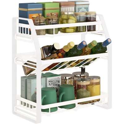 - DETACHABLE SPICE RACK: Our 3-tier spice rack organizer offers ample space for storing condiments, spices, olive oil, and wine bottles. The detachable design allows for quick customization, easily transforming into a 2-tier shelf to accommodate taller bottles. Perfect for kitchen countertops, cabinets, and pantries, keeping your essentials within reach and organized.