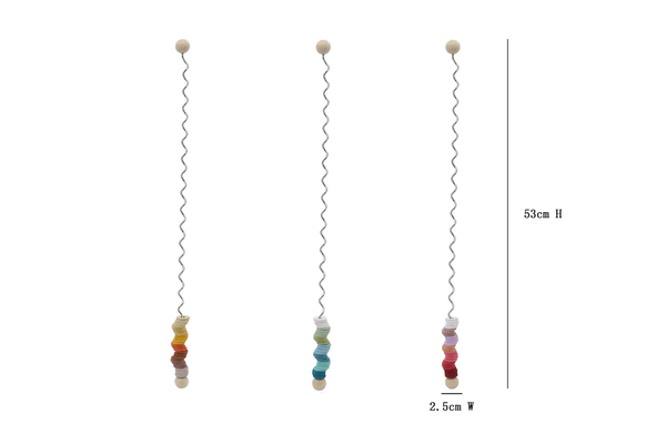 Hold the spirelli upright, then turn upside down and watch the wooden rings cascade down the spiral making a cool whooshing sound as they go. A captivating yet simple toy for the little ones.