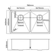 Single Bowl size: 347.5mm x 400mm x 205mm