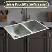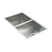 This double sink is made from hand-made 1.2mm-thick Type 304 stainless steel for a brilliant look that will last and last. It measures 770 x 450 x 190mm (L x W x D) with a 90mm drain opening. Two strainer wastes are included. Installation is either drop-in or Undermount / Topmount-style. Undermount / Topmount brackets are included along with full installation instructions.
