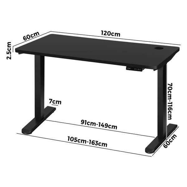 Standing Desk Electric Height Adjustable Motorised Sit Stand Desk Rise Black Top and Black Frame