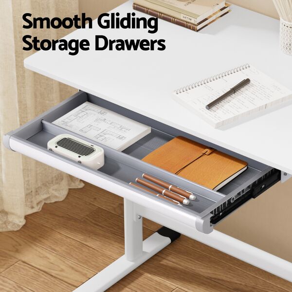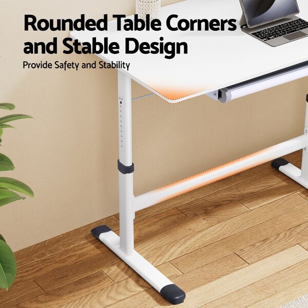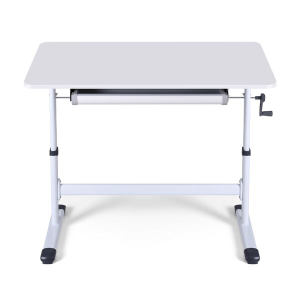 Enjoy a tidy and ergonomic workspace with this standing desk. Designed as a practical study desk or home workstation, it features a simple hand-crank mechanism for smooth height adjustment. The built-in drawer helps keep your essentials organised and within reach. Supported by a sturdy stabilising brace, this adjustable desk offers a stable and reliable surface for your computer and work materials, all in a clean, minimalist design.