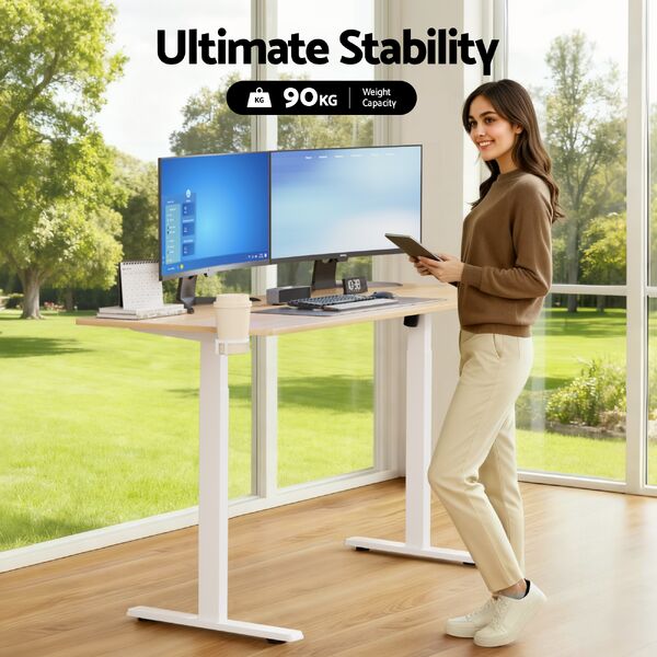 Do you experience poor posture or mysterious pains while working? Keep your back and health in good shape with an Sit Stand Desk. With our stepless height-adjustable desk frame, you can stand while working and stretch and engage your muscles to prevent them from weakening. Our high-quality powder-coated desk frame makes cleaning and maintenance easy and ensures ultimate sturdiness. It features an easy-to-use touch control panel that enables you to easily adjust the desk to a suitable height, and you can save up to three preset heights for a seamless transition. The reminder mechanism will let you know the optimal time to switch positions. The smooth motor allow for ultra-quiet operation with low energy consumption. Plus, it comes with a cup holder, headphone hook, and cable management accessories to keep your workspace tidy. Best of all, the desk is easy to set up, so you can get to work right away. Enjoy improved posture, reduced fatigue and increased productivity with an Sit Stand Desk.