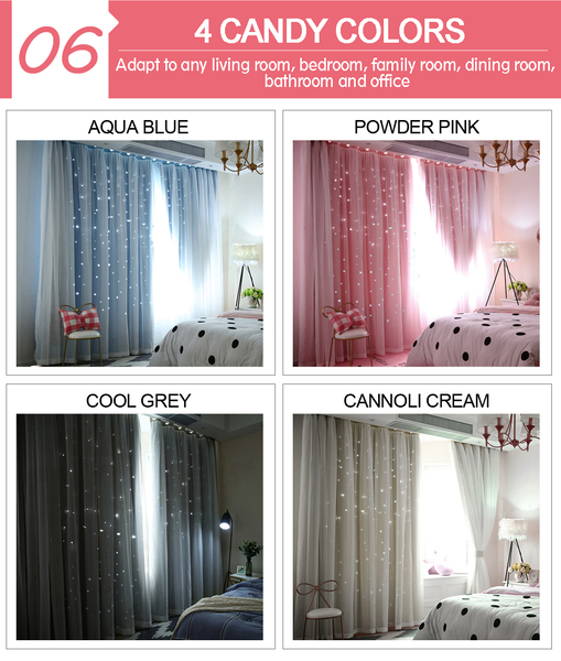 - Combining shading curtain and net curtain into one Hollow-out stars Design, creating romantic scene