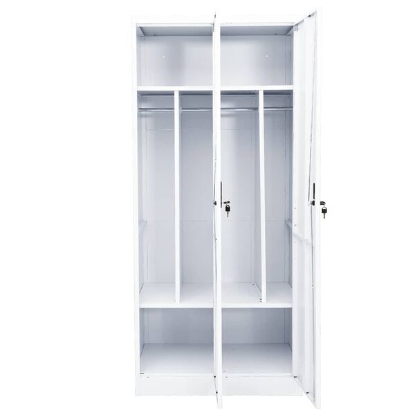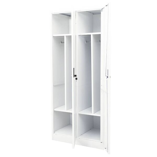 This steel wardrobe makes your clothes or daily accessories easy to access. It will provide a perfect storage solution and add chic touch to your existing home. This wardrobe is made of steel, making it durable as well as easy to clean. It has 2 shelves and 2 locks. This clothing cabinet provides large compartments, which offer you ample storage space both for your longer outfits and other folded clothes or accessories, such as sweaters, jeans, hats, hand bags, etc.