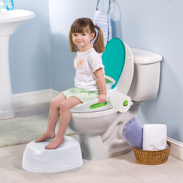 Perfect for potty training your child, the Step-By-Step Potty and step stool is a complete potty training system. With a built-in lid and toilet tissue holder, this potty helps parents encourage and teach important hygiene habits. The potty can be used as a stand alone, toilet topper training seat, and a step stool.