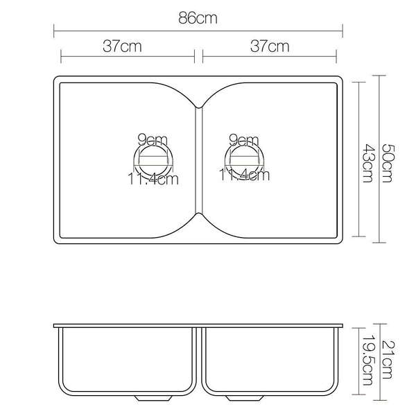 Cefito 860 x 500mm Granite Stone Double Sink - Black