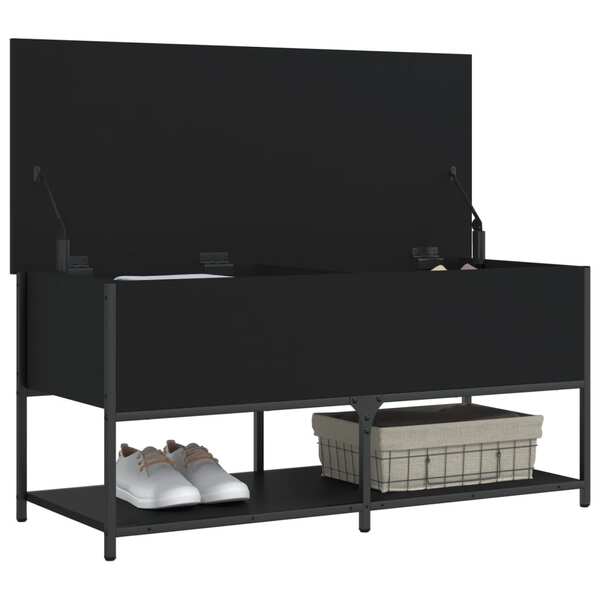 Storage Bench Black Engineered Wood
