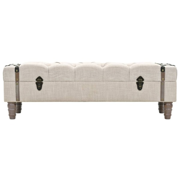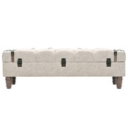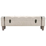 Add a vintage touch to your interior design with our storage bench. The storage box is made of solid fir wood. It has a padded seat that is upholstered in a modern fabric and has sturdy steel legs. There is ample space for keeping a host of different items out of sight yet within reach. Thanks to its durable handle, the trunk bench can also be easily moved and placed in any room. Assembly of this item is easy.