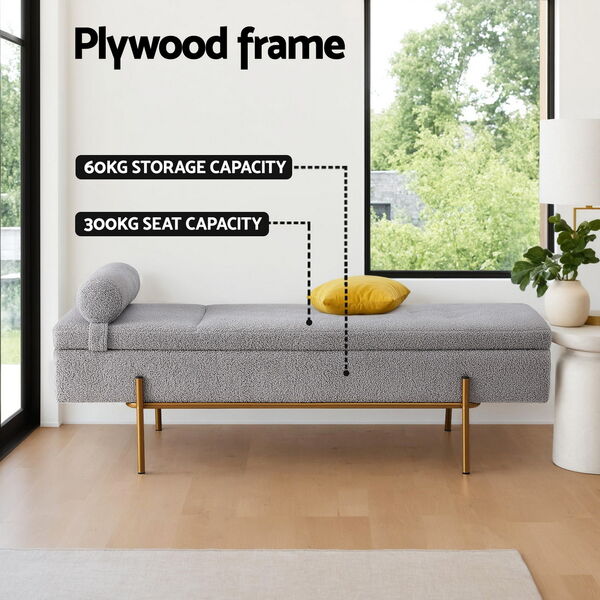 Discover our versatile Storage Ottoman featuring a detachable pillow, sturdy plywood and pine wood frame, high-resilience foam padding, hidden storage space, durable metal hinges, and easy assembly. Perfect for stylish and functional home organization.