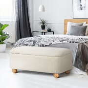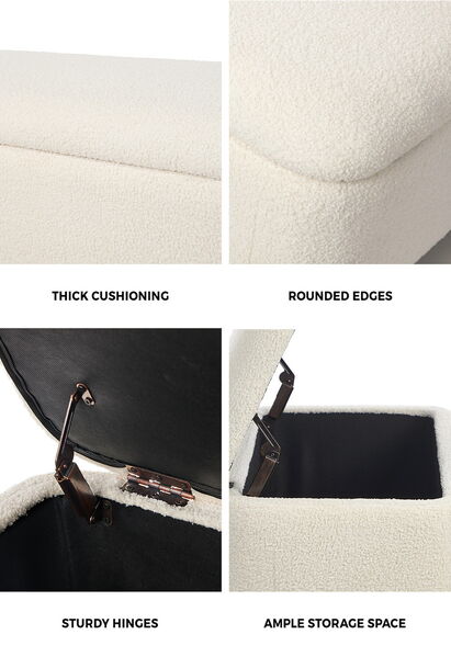 With its stylish profile, this unique ottoman from is a definite conversational piece that is designed to impress. And then some more. Upholstered in a choice of premium teddy or linen fabric, the ottoman oozes plenty of luxurious vibes. Even just viewing it conveys a palpable feeling of inviting comfort and pleasure. With its pleasant appearance, the upholstery is also soft to the touch with a rich texture whilst the seat is blessed with high resilience foam for exceptional comfort. More noticeably too are the spherical feet that lends a chic character and persona to this quintessential furniture piece. And then there is the piece de resistance. Lift up the seat (with a wide 90° opening angle assisted by robust hinges) and discover a more than generous storage area to hide away household essentials for neat and tidy keeping. Or have them close at hand when required. There can never be too much storage space available for the house proud. Nothing is left to chance to create this ottoman that is simply exceptional in its finish. From the durable wood cum MDF framework to the perfectly rounded corners, the ottoman is crafted with dedication and precision that befit its flawless disposition. Foot stool, bench or storage box. Little wonder that the Storage Ottoman will definitely has its hallowed presence in your discerning home décor in more ways than one.