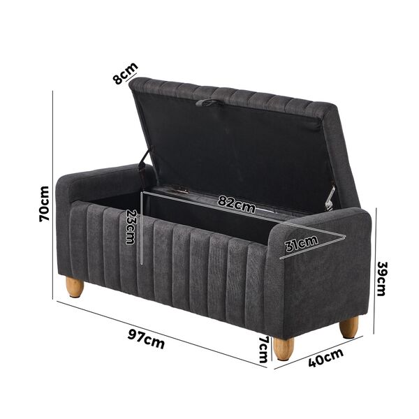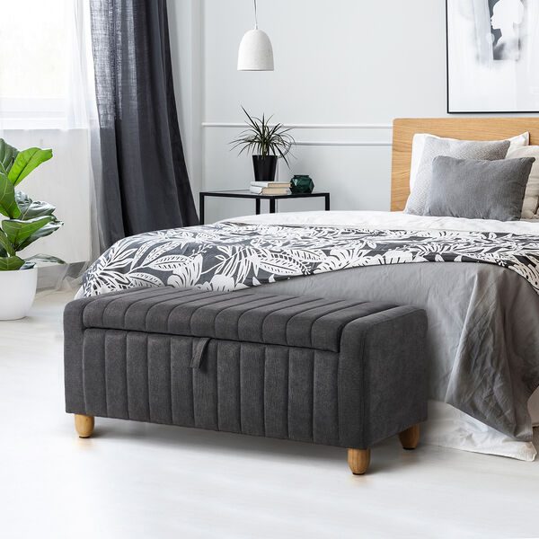 With its stylish striped-design profile, this unique ottoman from is a definite conversational piece that is designed to impress. And then some more. Upholstered in premium linen fabric, the ottoman oozes plenty of luxurious vibes. Even just viewing it conveys a palpable feeling of inviting comfort and pleasure. With its pleasant appearance, the upholstery is also soft to the touch with a rich texture whilst the seat is blessed with high resilience foam for exceptional comfort. And then there is the piece de resistance. Lift up the seat (with a wide 90° opening angle assisted by robust hinges) and discover a more than generous storage area to hide away household essentials for neat and tidy keeping. Or have them close at hand when required. There can never be too much storage space available for the house proud. Nothing is left to chance to create this ottoman that is simply exceptional in its finish. From the durable solid wood cum MDF framework to the perfectly rounded corners to the thick, sturdy feet, the ottoman is crafted with dedication and precision that befit its flawless disposition. Foot stool, bench or storage box. Little wonder that the Storage Ottoman will definitely has its hallowed presence in your discerning home décor in more ways than one.