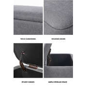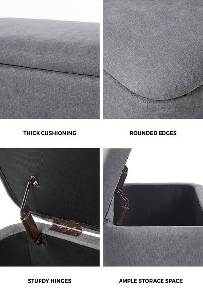 With its stylish profile, this unique ottoman from is a definite conversational piece that is designed to impress. And then some more. Upholstered in a choice of premium teddy or linen fabric, the ottoman oozes plenty of luxurious vibes. Even just viewing it conveys a palpable feeling of inviting comfort and pleasure. With its pleasant appearance, the upholstery is also soft to the touch with a rich texture whilst the seat is blessed with high resilience foam for exceptional comfort. More noticeably too are the spherical feet that lends a chic character and persona to this quintessential furniture piece. And then there is the piece de resistance. Lift up the seat (with a wide 90° opening angle assisted by robust hinges) and discover a more than generous storage area to hide away household essentials for neat and tidy keeping. Or have them close at hand when required. There can never be too much storage space available for the house proud. Nothing is left to chance to create this ottoman that is simply exceptional in its finish. From the durable wood cum MDF framework to the perfectly rounded corners, the ottoman is crafted with dedication and precision that befit its flawless disposition. Foot stool, bench or storage box. Little wonder that the Storage Ottoman will definitely has its hallowed presence in your discerning home décor in more ways than one.