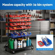 Storage Rack 74 Bin Double Sided Mobile Garage Workshop Tools Organizer