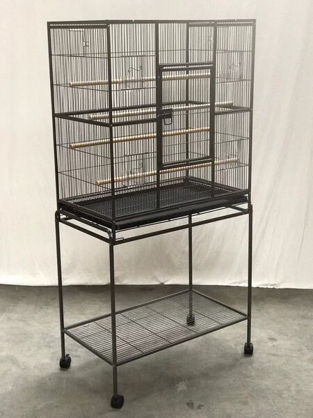 Our goodquality wrought iron birdcage features perches, feeders and ample room for your bird to spread their wings.
