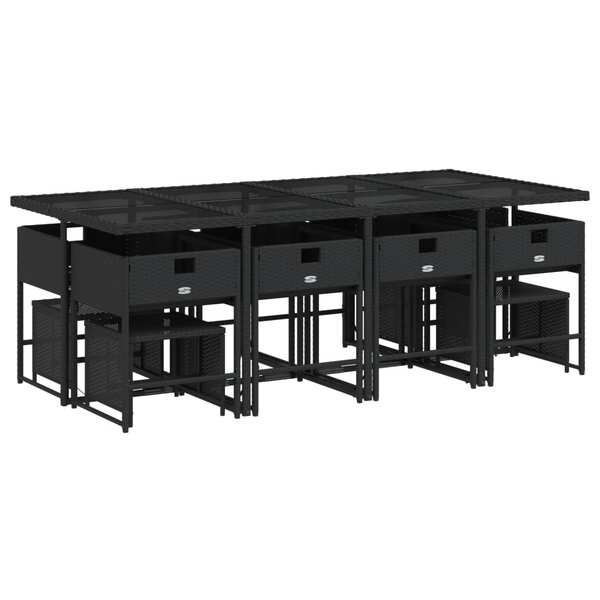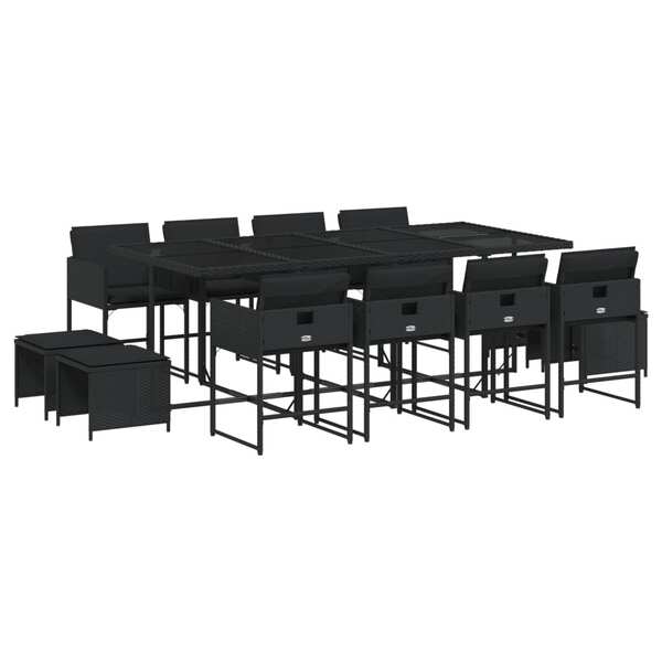 Stylish: 13 Piece Garden Dining Set with Cushions Black Poly Rattan