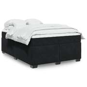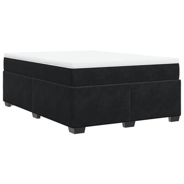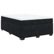 Stylish Black Velvet Box Spring Bed and Mattress for Queen-Sized Comfort