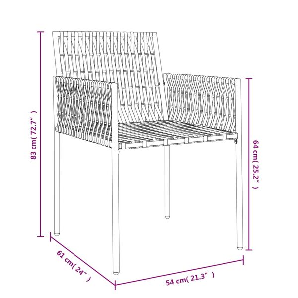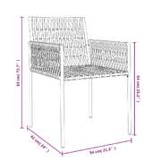 These stylish garden chairs are a perfect addition to your garden and terrace, creating a lasting impression! Durable material: PE rattan, also known as poly rattan, is weather resistant and easy to clean. It remains beautiful on the outside for a long period of time. It offers great quality, convenience and an aesthetic look.Sturdy frame: The steel frame makes the garden seating sturdy and stable for daily outdoor use.Comfortable seat experience: The backrest and armrests add extra seating comfort for the outdoor chair. Also, the thickly padded cushions provide comfort for your sitting time. Note:To make sure your outdoor furniture stays beautiful, we recommend protecting it with a waterproof cover.